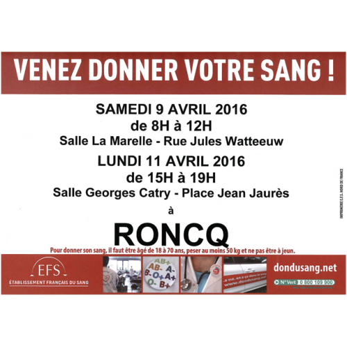- Mail:dondusang@roncq.asso.fr