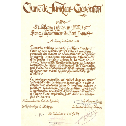 Depuis 1987, aide au développement du village Malien de Sélinkégny situé dans la région de Kayes. Travail en partenariat avec le village dans les domaines de la santé, éducation, maraîchage, social…