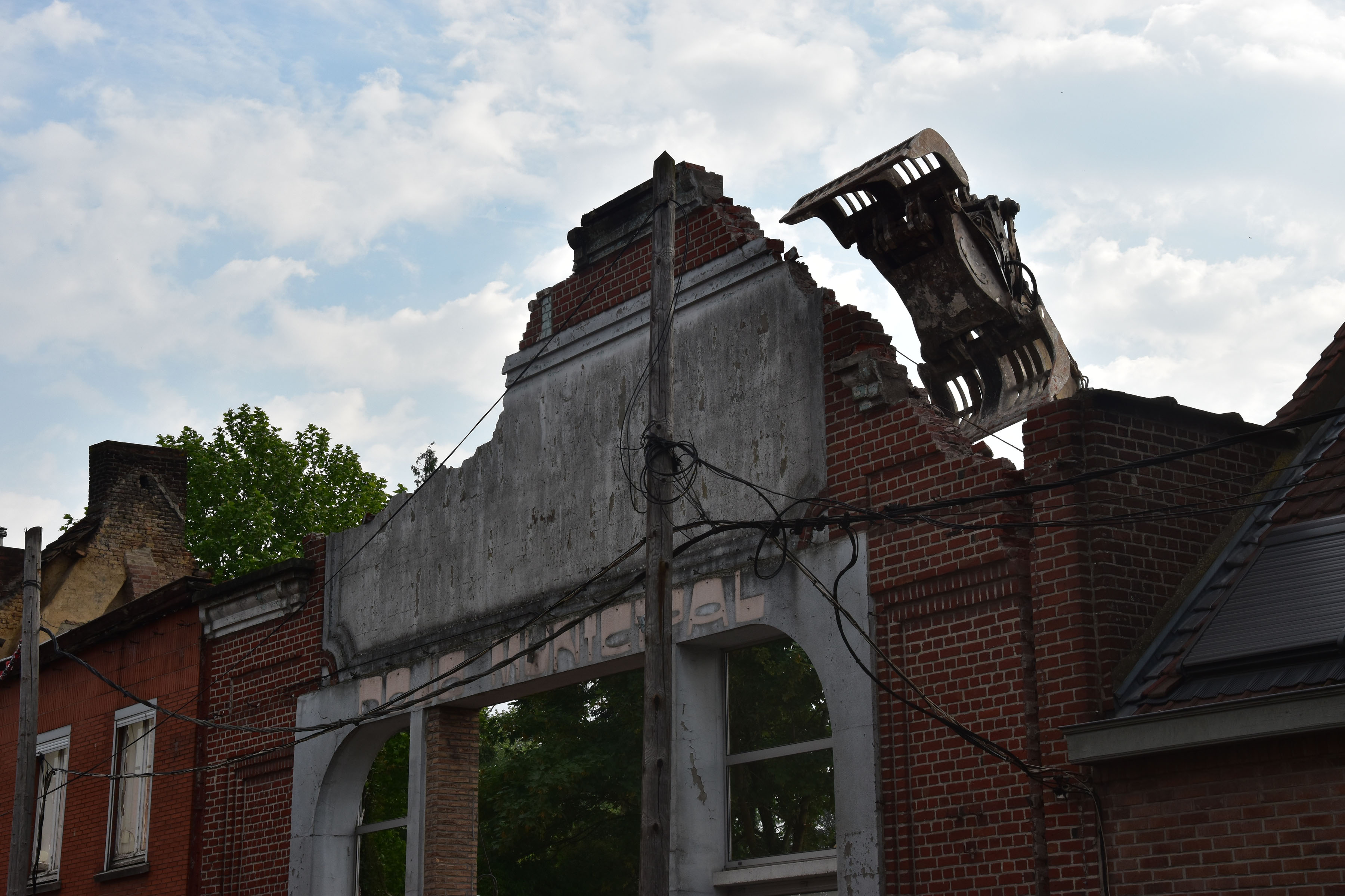 Spectaculaire démolition des façades de l’ancienne poste et de l’ancien dojo