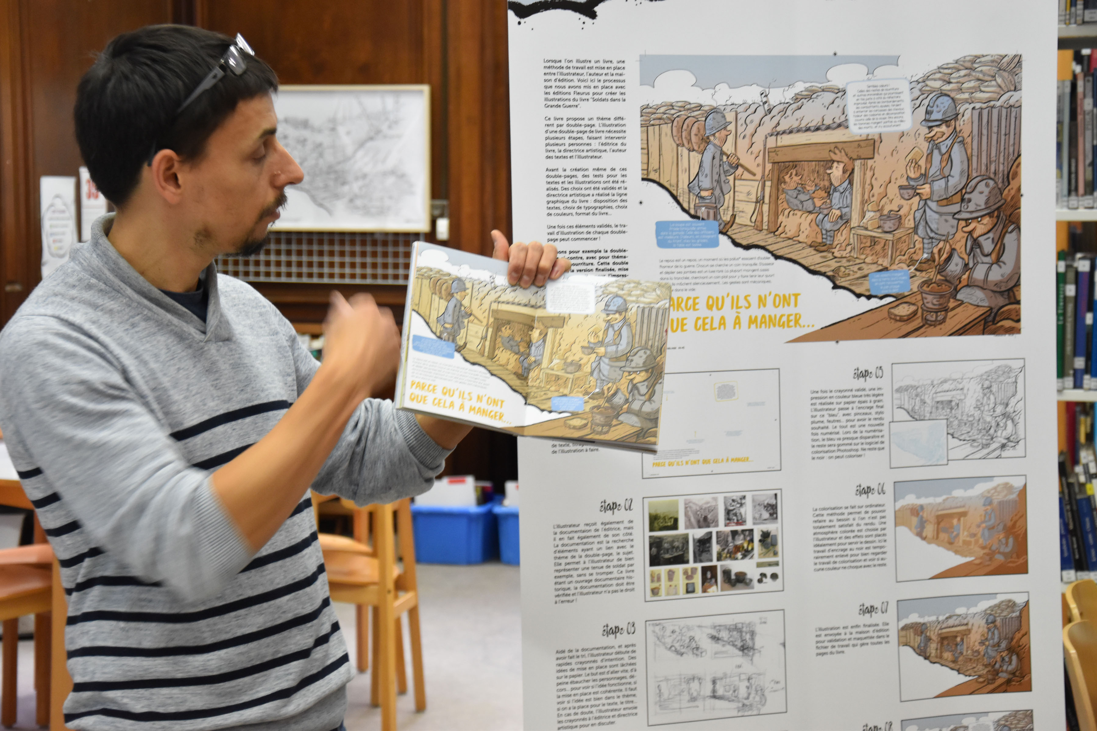 « 1914-1918, dessins de poilus » à la Bibliothèque : les enfants à la rencontre de l’illustrateur